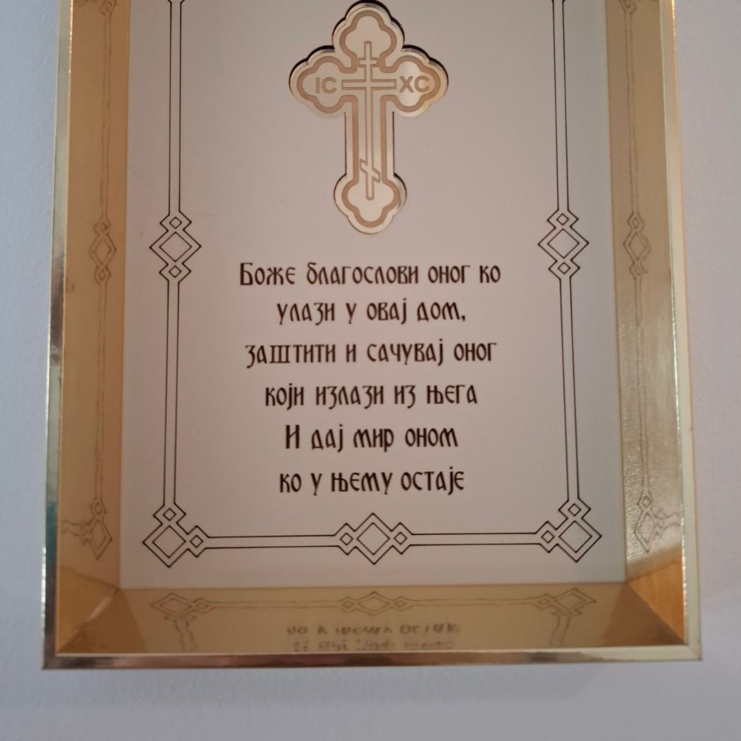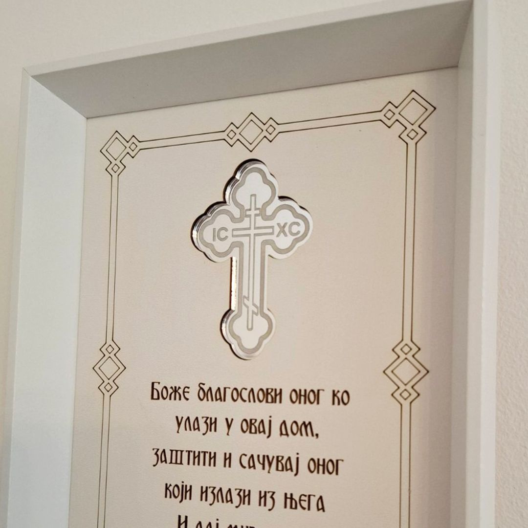 Ovaj pažljivo izrađen blagoslov predstavlja harmoniju tradicije i savremene obrade materijala, dizajniran da postane trajni deo vašeg životnog prostora. Njegova svrha prevazilazi običnu dekoraciju – on je simbol dobrodošlice, mira i zaštite koji oplemenjuje ambijent i podseća na prave porodične vrednosti.