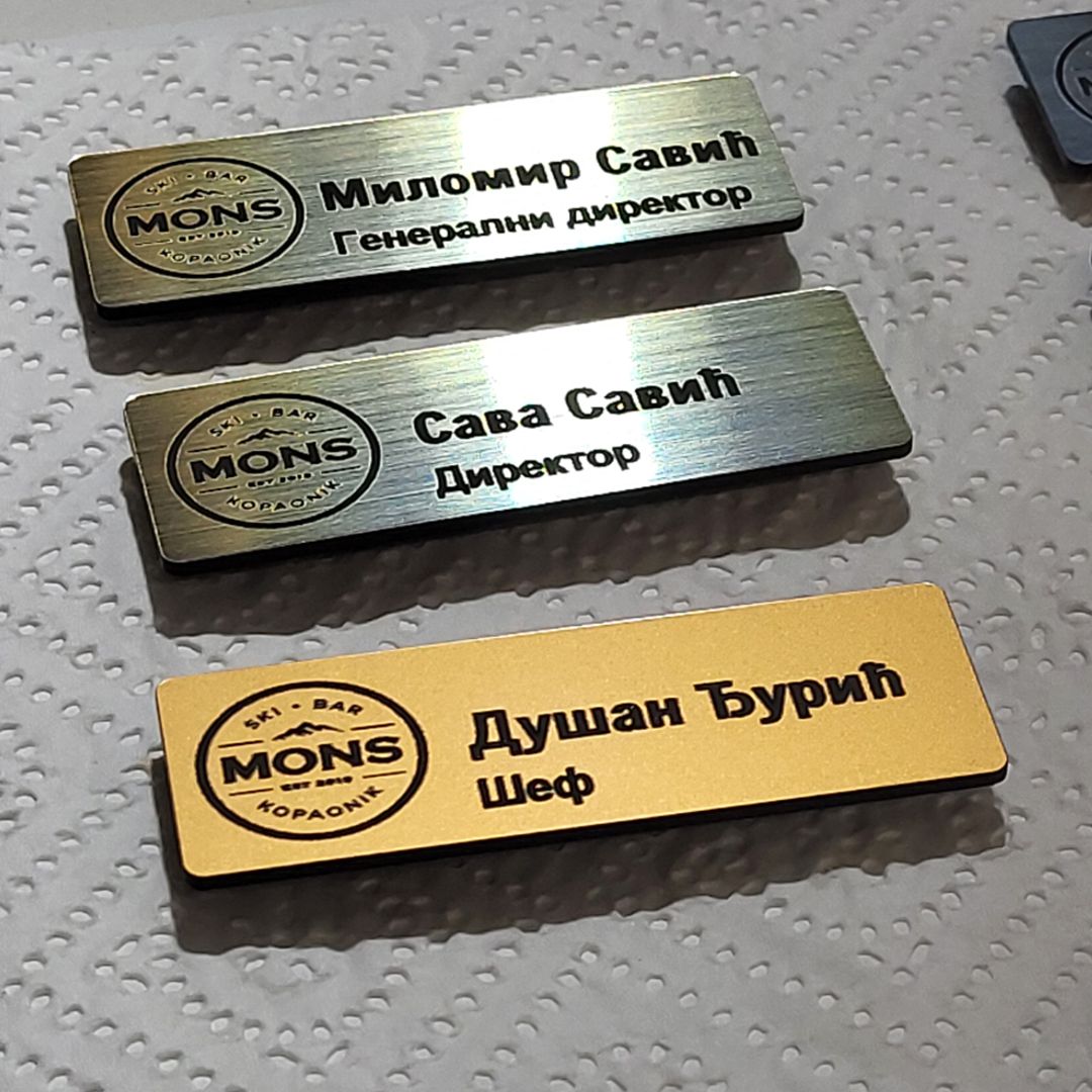 Brendiranje: Uz ime/titulu, pločice mogus sadržati ugravirani logo firme, stvarajući jedinstven vizuelni identitet.