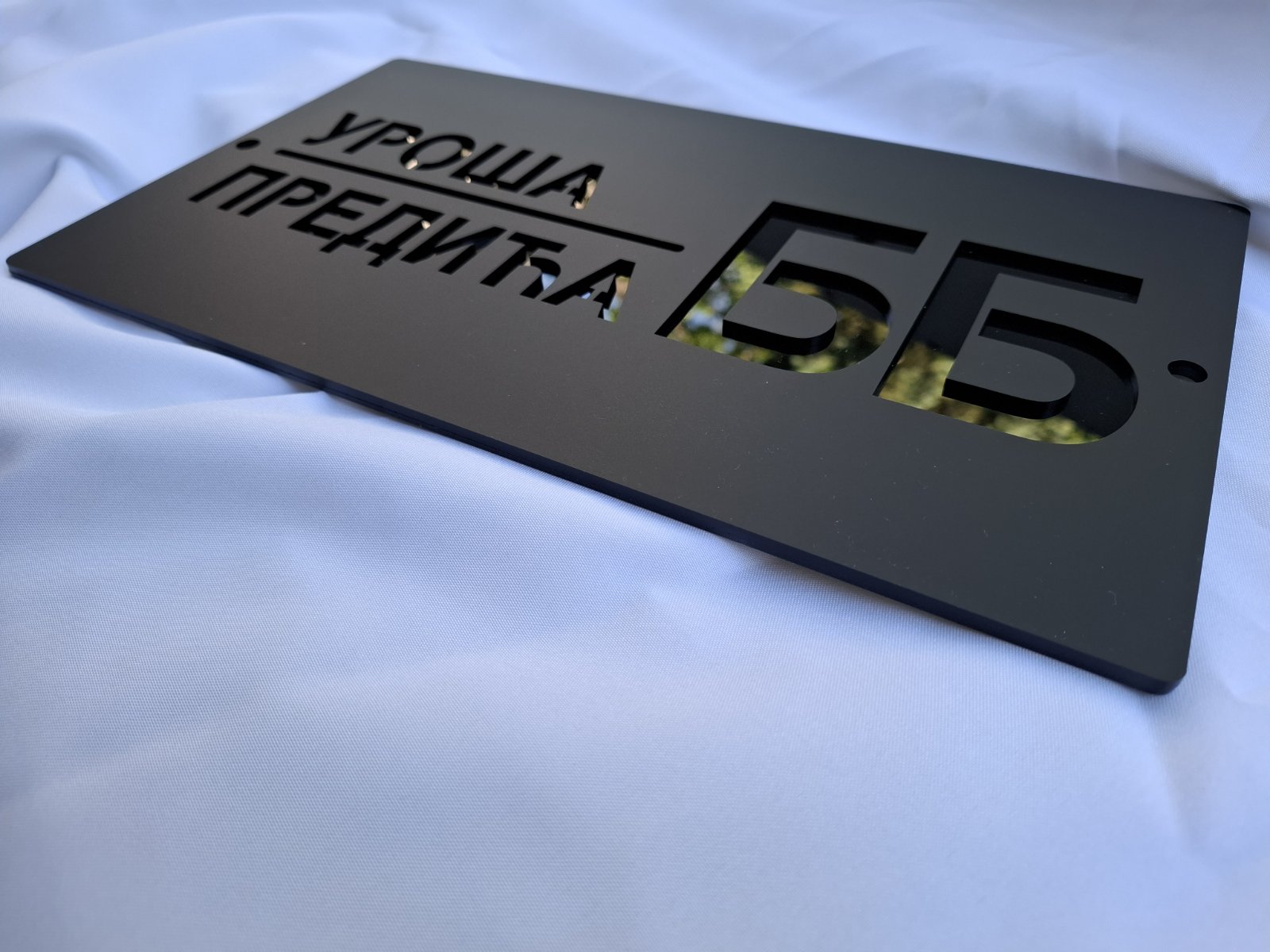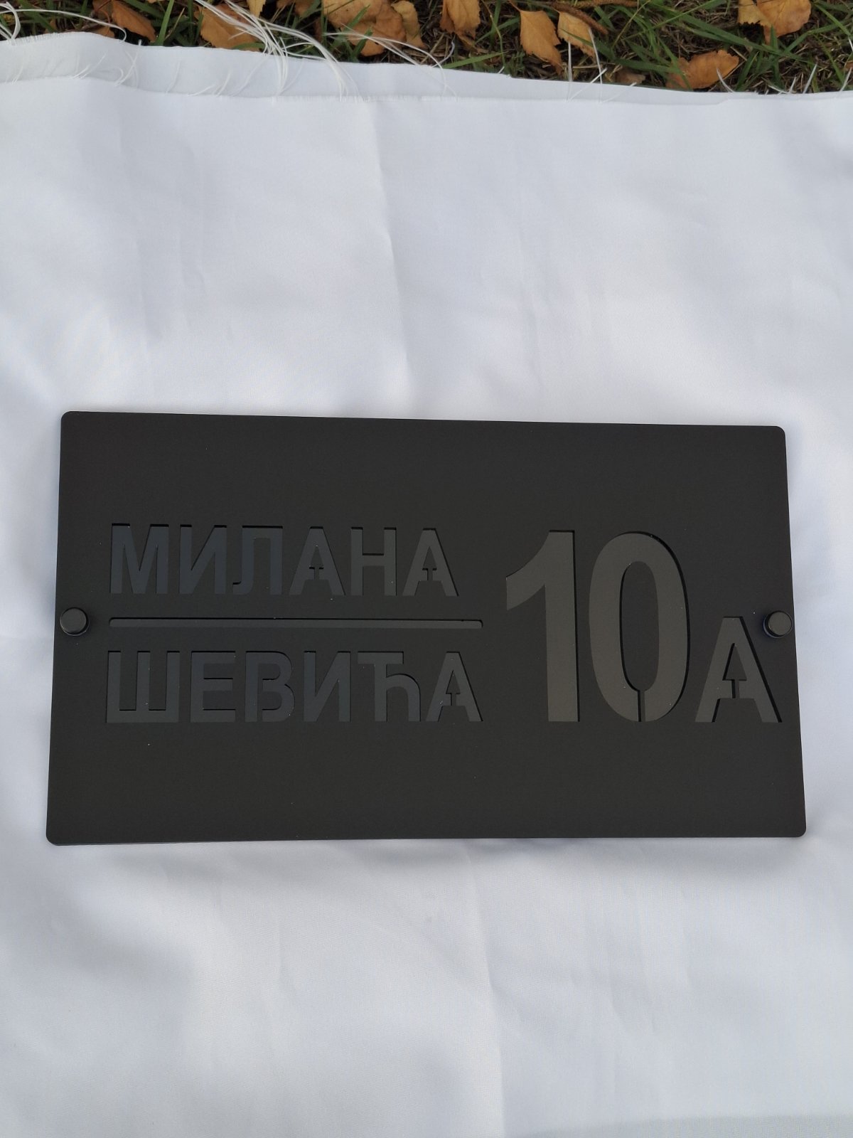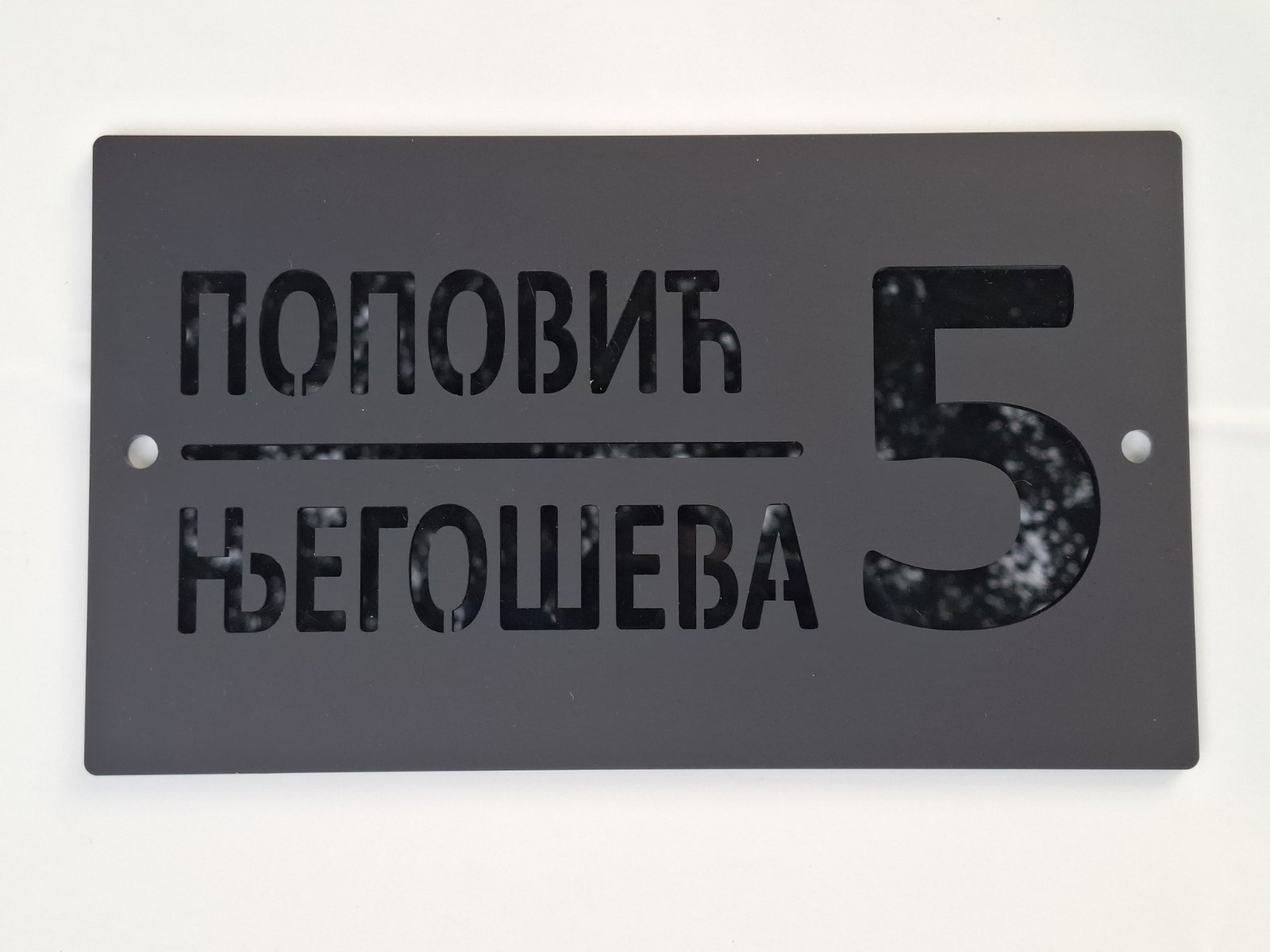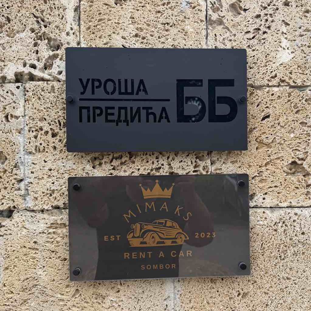 Ekskluzivni kućni broj izrađen od laserski sečenog akrila, modernog dizajna u kombinaciji mat i sjajne crne boje.