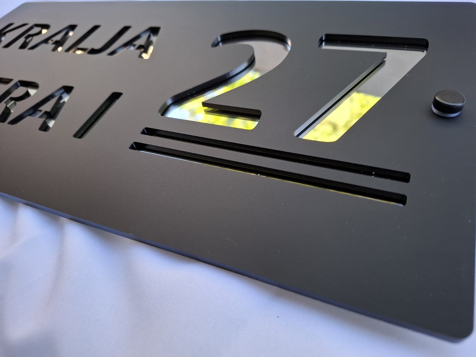 Ekskluzivni kućni broj izrađen od laserski sečenog akrila, modernog dizajna i dugotrajne izrade.