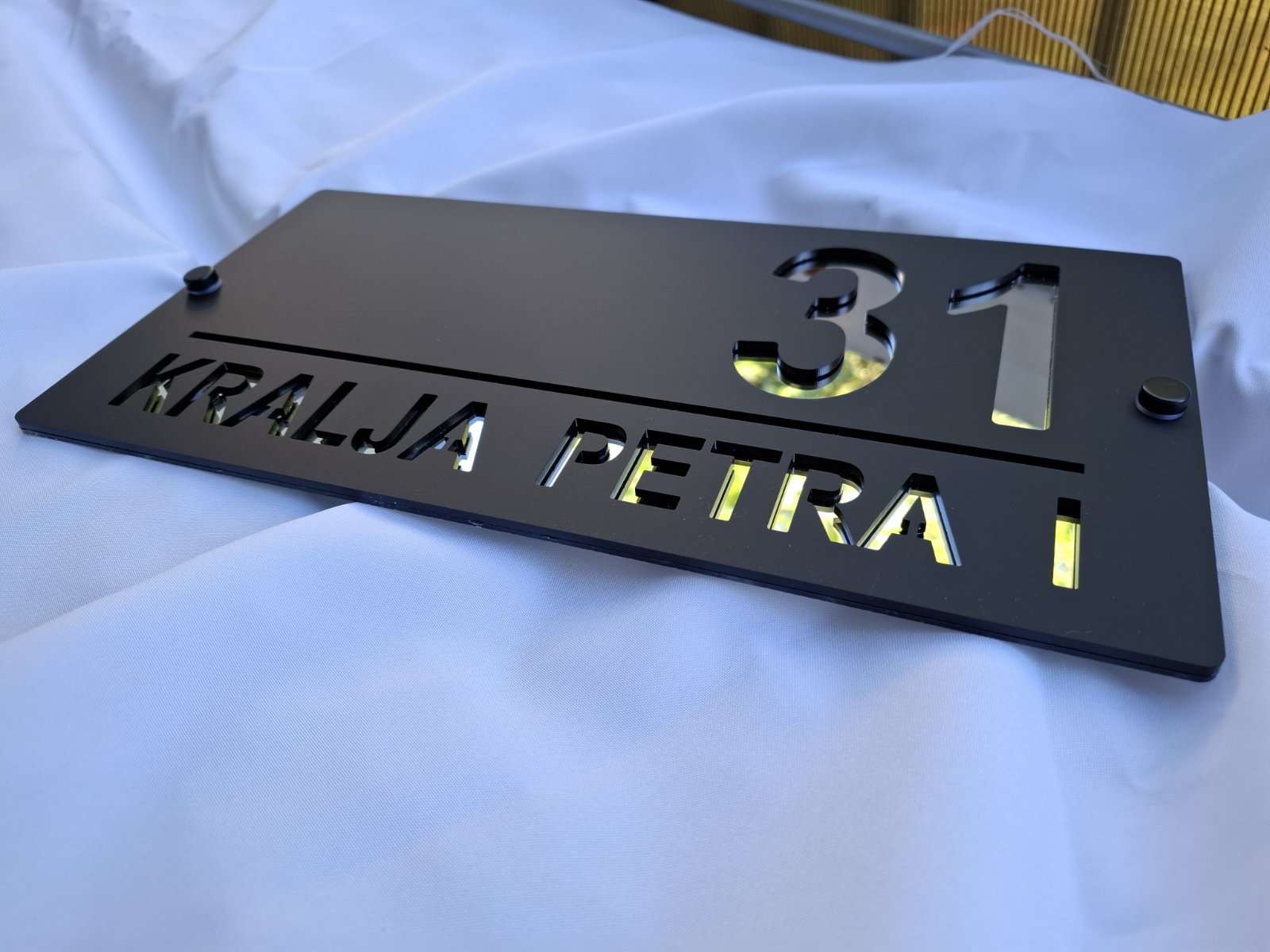 Ekskluzivni kućni broj izrađen od laserski sečenog akrila, modernog dizajna i dugotrajne izrade.
