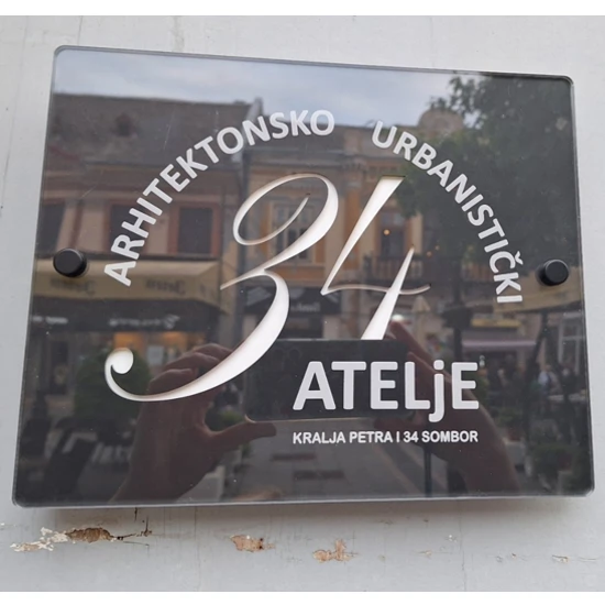Elegantna akrilna tabla, precizno laserski sečena i gravirana, idealna za profesionalan izgled vaše firme. Izdržljiva i jednostavna za montažu.