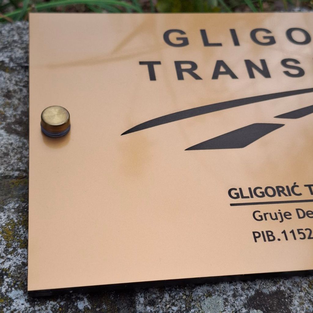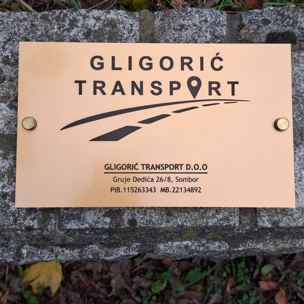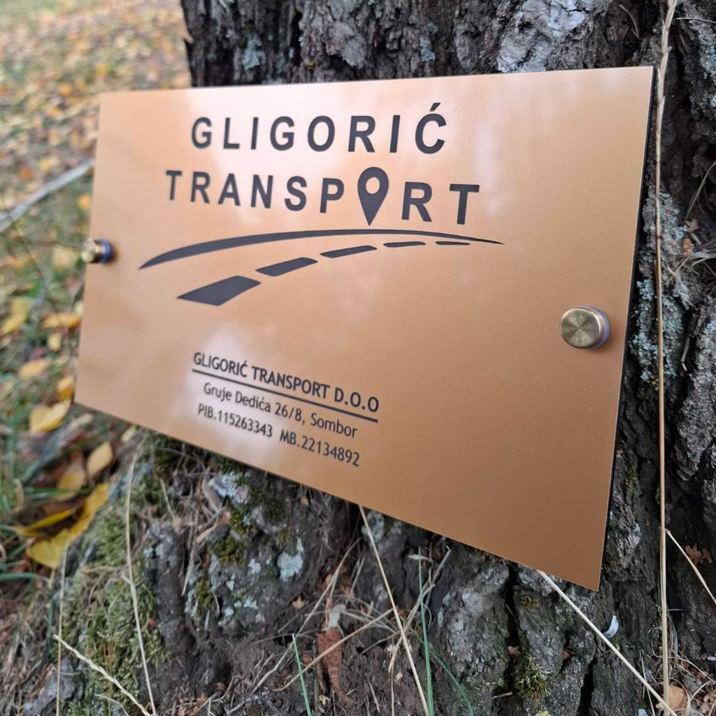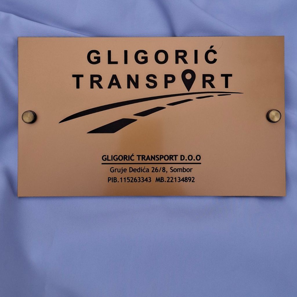 Ova tabla profesionalno prikazuje logo i naziv vaše firme, pružajući sofisticiran i moderan izgled.