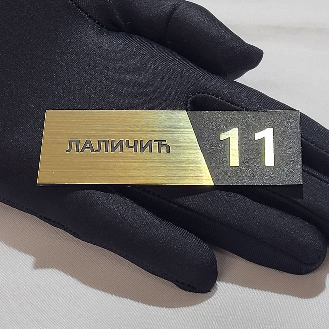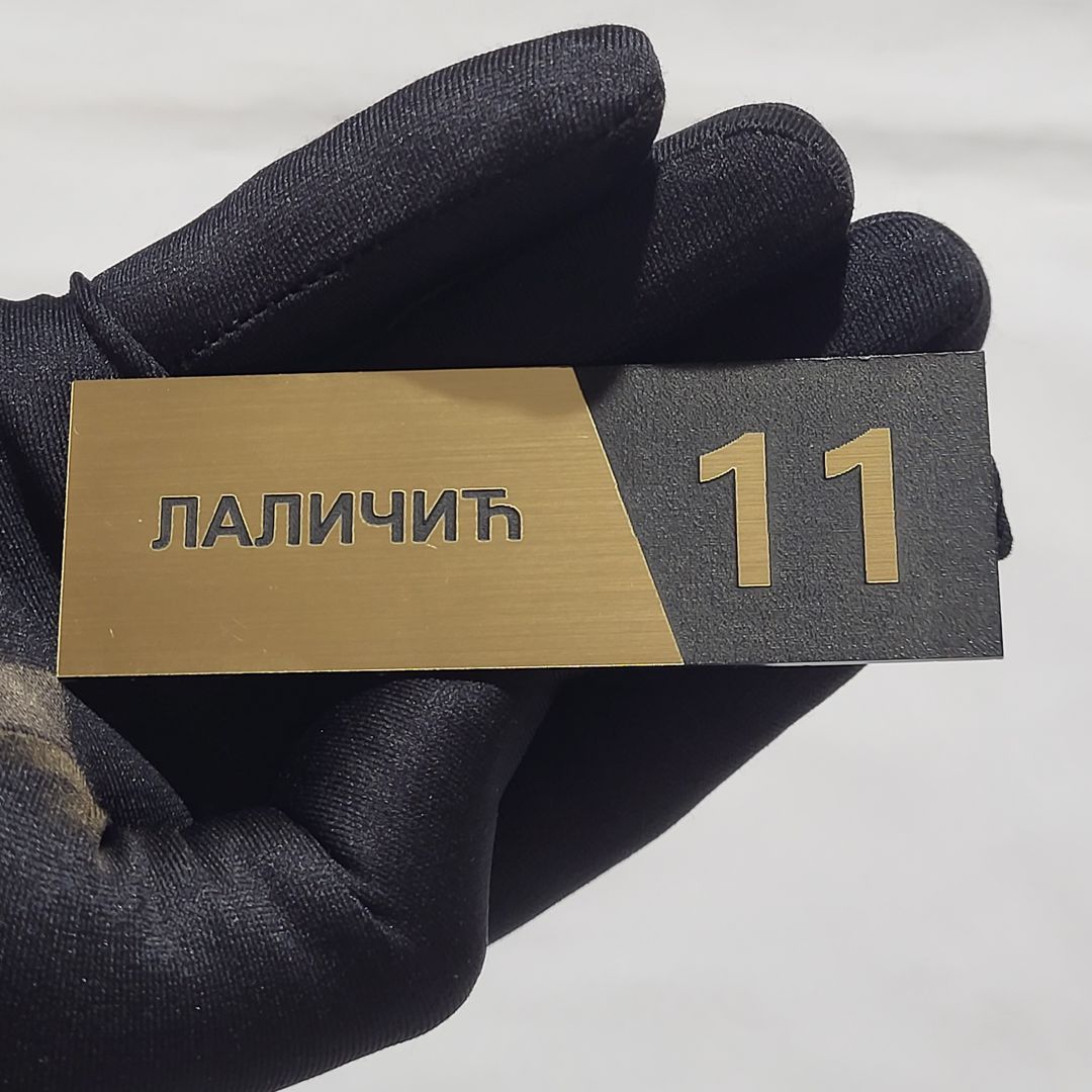 Samolepljiva pločica za vrata sa brojem i natpisom, izrađena od visokokvalitetne graverske plastike.