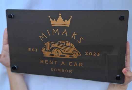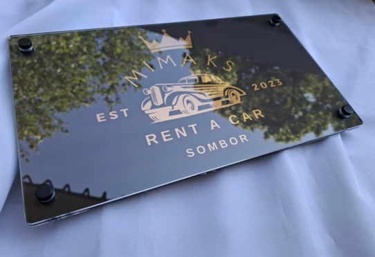 Personalizovana tabla za firmu izrađena tehnikom laserskog graviranja i sečenja kombinuje luksuznu graversku plastiku sa elegantnim providnim akrilom.